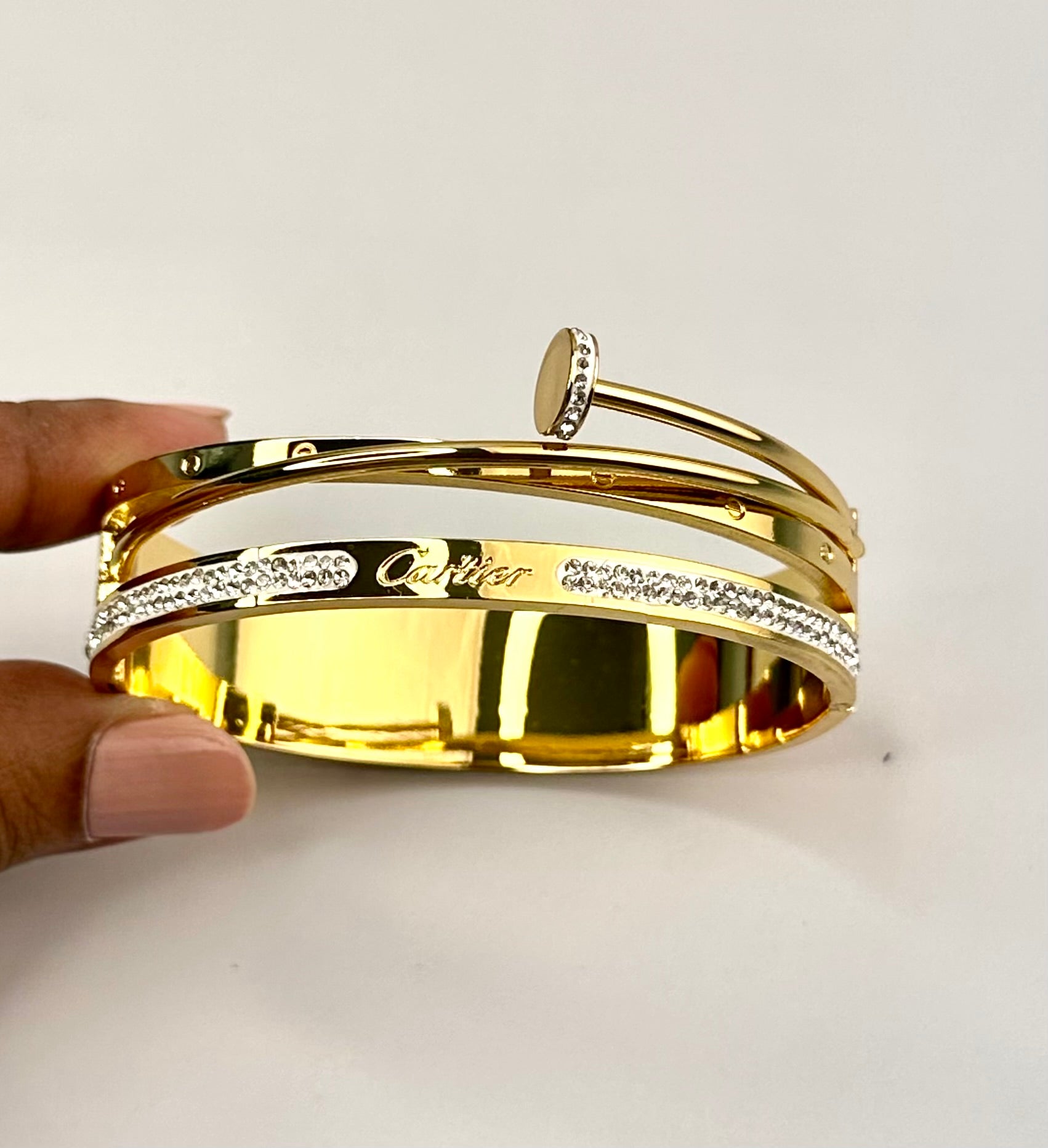 Experience luxury with our Inspired Openable Bangles. Featuring a Cartier inspired design, these bangles are made of high-quality stainless steel that is both anti-tarnish and long-lasting. Elevate your style with these high-end accessories that exude sophistication and elegance.