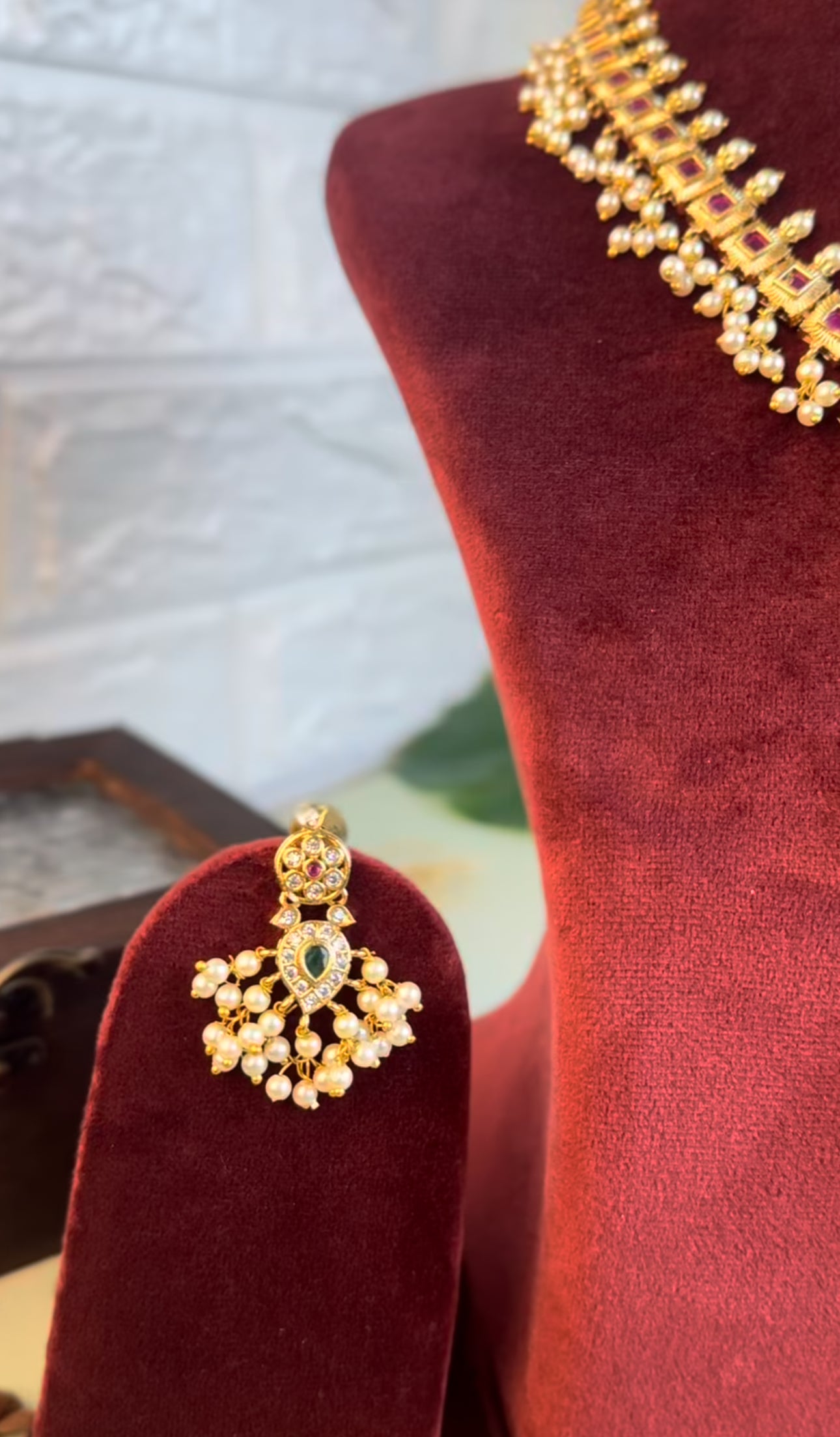 Premium moissonite Ruby Pearl drop Set